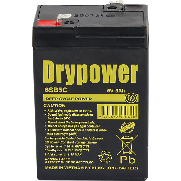 | Description | Drypower 6V 5Ah Sealed Lead Acid Battery | ||