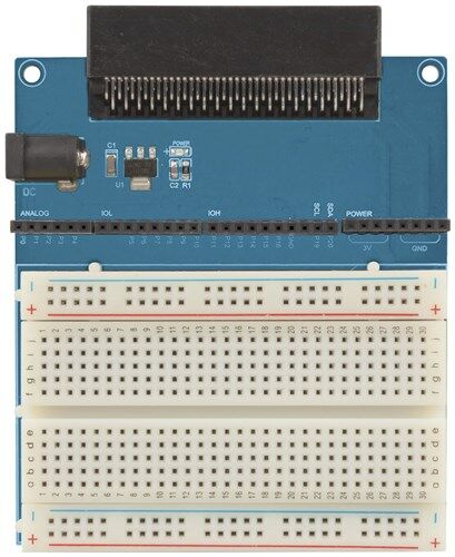 Designed to break out all of the IO pins on your micro:bit for you to create additional circuits and hardware. Prototype using the supplied 400-hole breadboard or solder directly to the board for a permanent circuit. Onboard headers provide input and output connections and an integrated power supply provides 3V power from a connected 5-9VDC power adaptor (not included).