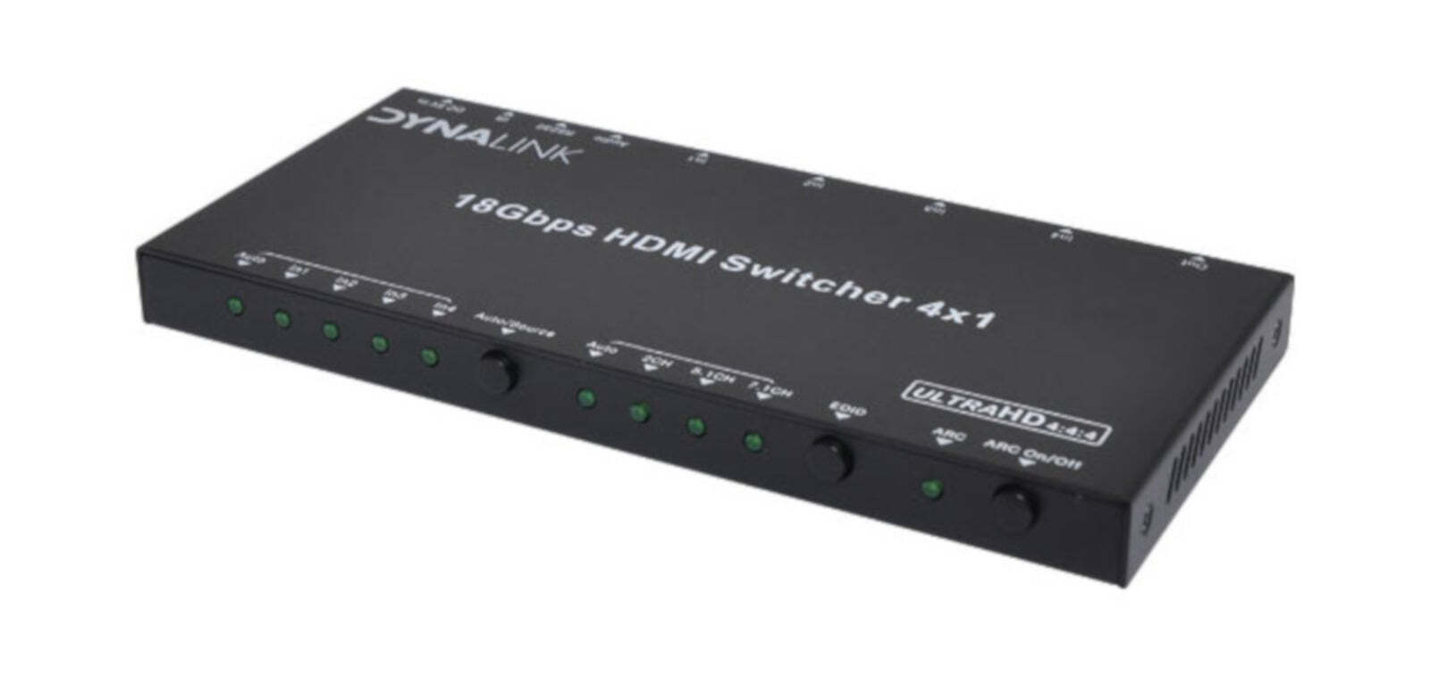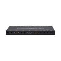 This compact 4-way HDMI switcher features manual & infra-red remote control for switching up to 4 sources to a single display supporting resolutions up to 4k 60Hz. Ideal for home theatres, showrooms, boardrooms & lecture theatres. Includes power supply & remote control. Analog and digital audio signals can be split from the HDMI signal. Audio EDID is selectable to 2.0, 5.1 and 7.1 modes. ARC function allows the audio from the selected display to be sent to the outputs provided. Automatically switches to last used input on power up.