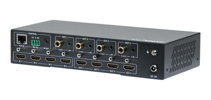 • Output Ports: 4×HDMI Type A [19-pin female], 4×L/R audio out[3.5mm Stereo Mini-jack] 4×COAX audio out[RCA]