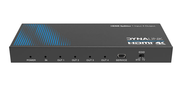 This is a high performance 1x HDMI input to 4x HDMI output switcher which is powered via a USB port. The system supports all 3D TV formats in addition to all HDTV formats up to 4K Ultra HD (3840 x 2160p) @60Hz video. It also supports HDCP 2.2 compatibility.