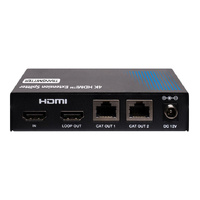 - Output: 1 x HDMI LOOP OUT [HDMI type A, 19-pin female], 2 x CAT OUT [RJ45]