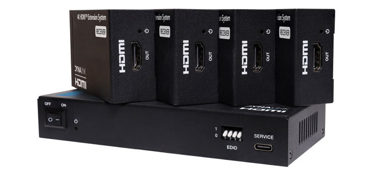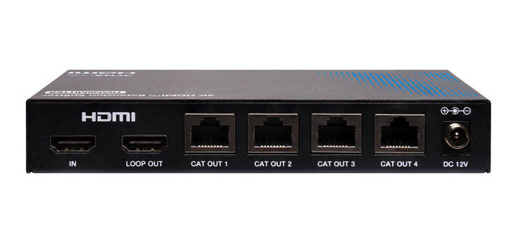 - Support 1 HDMI input, 1 HDMI loop output and 4 CAT outputs.