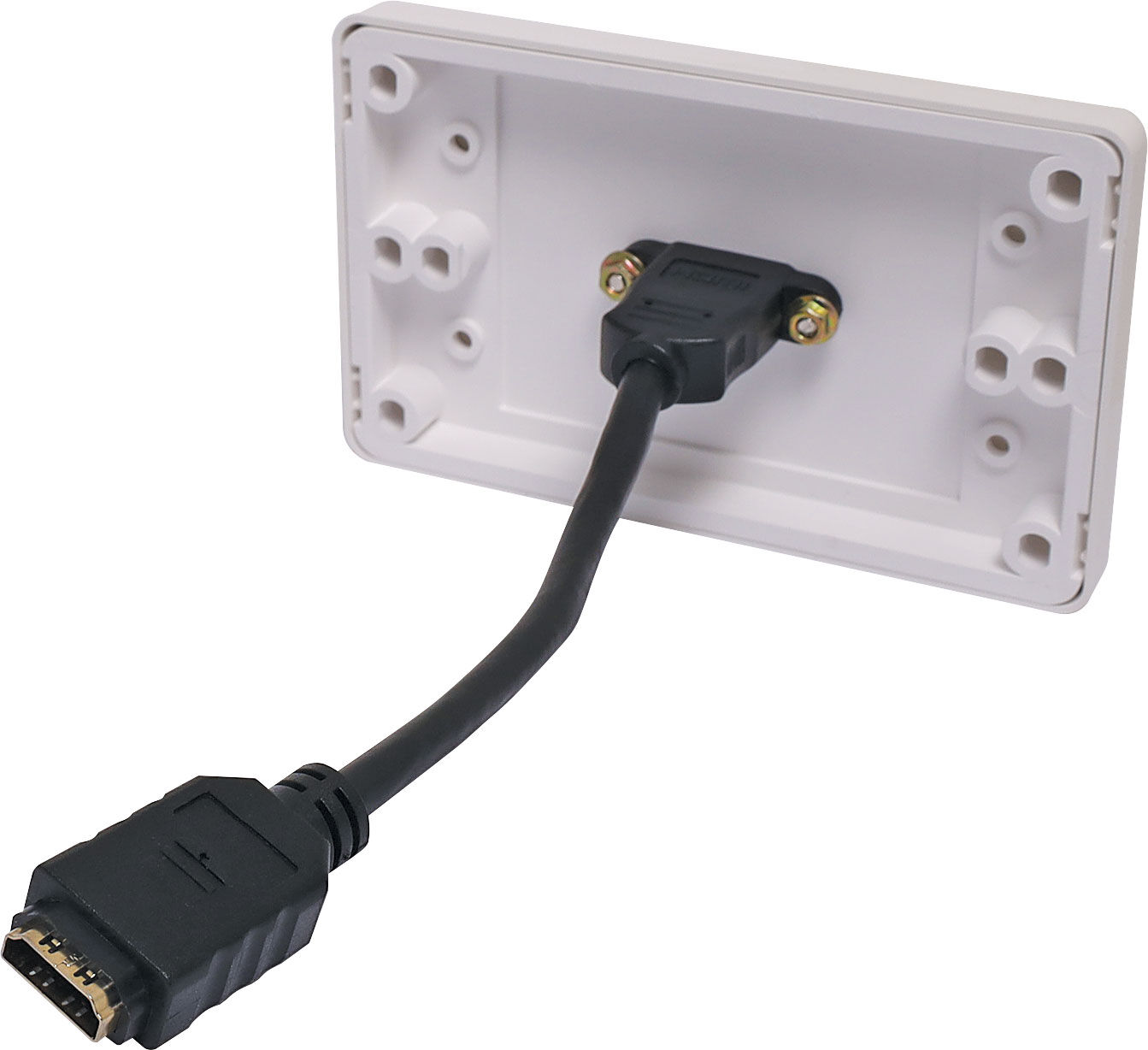 Single HDMI wall plate.Ultra High Speed HDMI Cable. Supports 8K resolutions at 60Hz. Suitable for use with 1.4, 2.0 and 2.1 HDMI compliant equipment. Rear is fitted with 150mm fly lead and HDMI socket for easy connection. Altronics dual cover type wallplate.