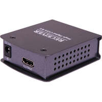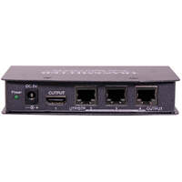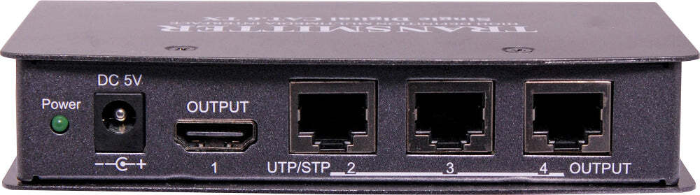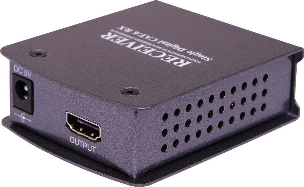 Receiver: Accepts the Cat. 6 cable from the Transmitter, thereby acting as the extender of the original HDMI source. This is connected to the HDMI port of the HDTV monitor. Cat. 6 connector input + HDMI output. Power Supply 5V 1A.