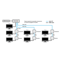 Receiver for use with the A 3224 HDMI Extender Kit and the A 3225 HDMI Extender Tranceiver. For multiple screens daisy chained from a single signal source use up to 6 tranceivers with a receiver at the very end.