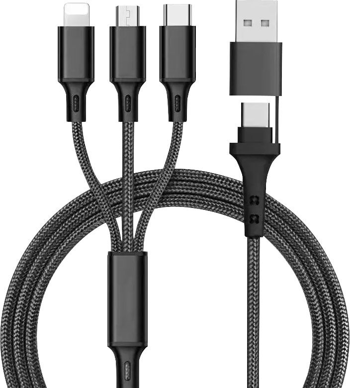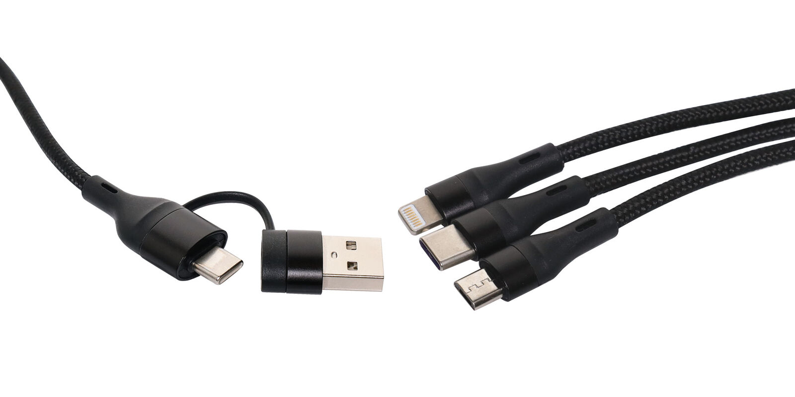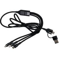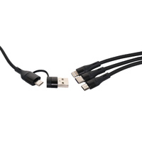 A handy 1.2m charging cable with three ends to suit USB type C, Apple lightning and micro USB devices. Handy to keep around the house or in the car glovebox. Features metal connector bodies, durable bradied cable sheath and flexible rubber strain reliefs. For added convenience the Type A connector also converts to USB type C so that it is compatible with both Type A and C car/wall chargers.