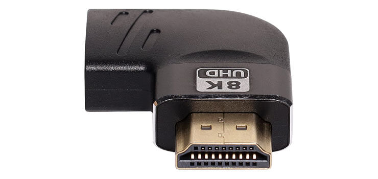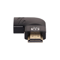 Right Angle 8K HDMI Adaptor. Upward direction adaptor. Suitable for 8K signals up to 7680 x 4320 resolution. Compatible with 1.4, 2.0 and 2.1 HDMI® compliant equipment.