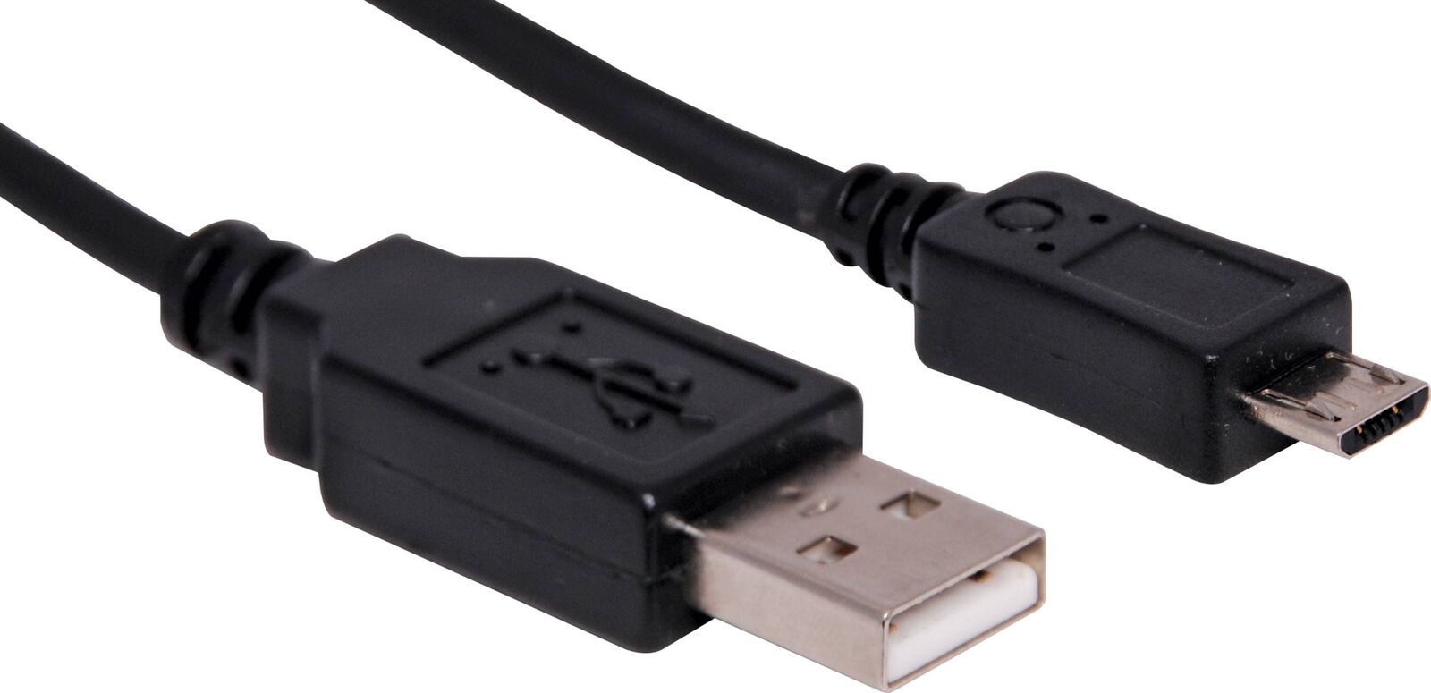 This USB 2.0 cable can be used to connect micro USB devices to USB-A type ports on computers, chargers or USB hubs. It can be used for both charging and data transfer purposes, supporting speeds up to 480Mbps (USB 2.0). Black outer sheath.