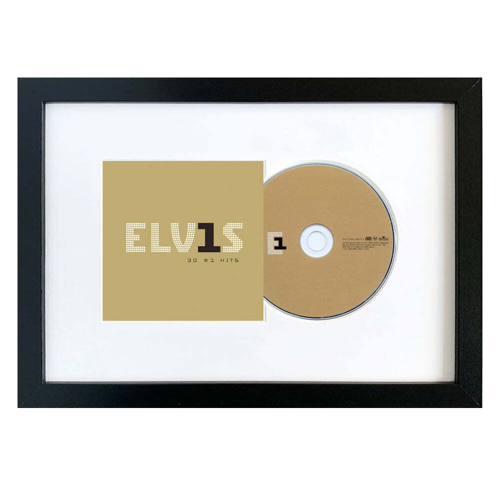 Framed Elvis Presley 'Elvis 30 #1 Hits' CD Album Art is one of our lifetime's most recognisable and significant albums. We are eager to honour and showcase your favourite artists by framing the actual original artist's CD cover and the CD itself. This CD is framed using all-wood profiles, archival matting, and UV-filtering non-glare acrylic. The cover artwork is presented in full, while the actual CD peeks out of the side. The outer dimensions of each frame are WH 32.5cm x 23.5cm.