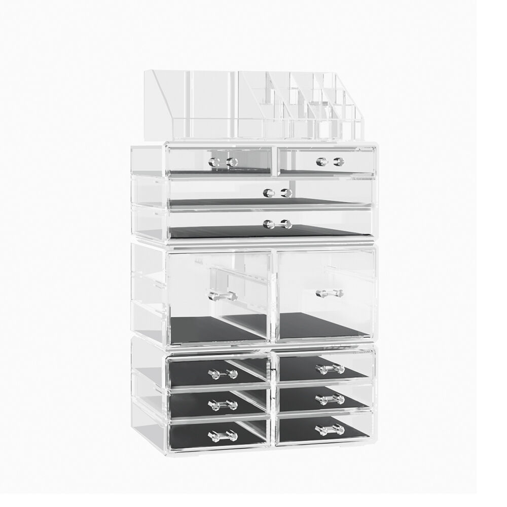 The Embellir acrylic makeup case is a dream come true for beauty enthusiasts who crave organisation and style. The large capacity offers ample space for all your cosmetics, with 12 clear acrylic drawers that keep everything neatly compartmentalised and visible. Say goodbye to rummaging through cluttered bags – each drawer slides smoothly for effortless access to your makeup essentials. The make up case not only has a space-saving, portable design but is also a breeze to clean, ensuring a hygienic and organised beauty routine.