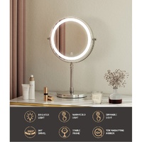 Get the star treatment with our gorgeous Embellir Make-up Mirror. Framed with 54 LED lamp beads, this mirror really lights up your visage for your daily makeup regimen. The aluminium frame is sturdy, lightweight, and adds a glistening touch of glamour to the entire mirror. The mirror sits on a smooth powder-coated metal base for stability and durability. Even more wonderful is that the LED light can be easily adjusted for brightness and colour temperature using the simple touch controls: choose from cool white, daylight or warm lighting. Choose from our wall-mounted, extendable frames or tabletop models. Turn your bedroom or bathroom into a celebrity VIP set overnight with our make-up mirror, and enjoy beauty in all its illuminated brilliance.