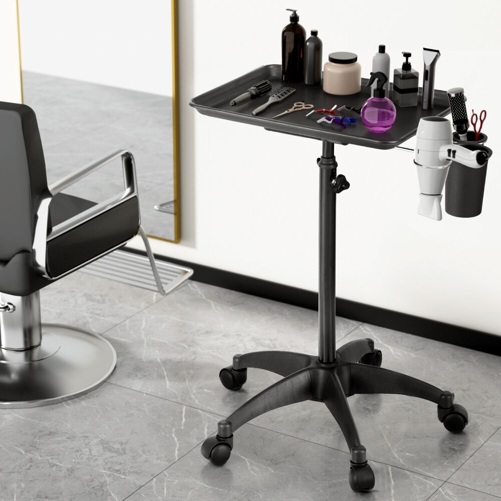 Introducing our sleek and stylish Embellir salon trolley: designed with wheels for effortless mobility, adjustable height, and a durable aluminium tray. Ideal for beauty and hairdressing salons, it ensures convenience and efficiency in your professional space.