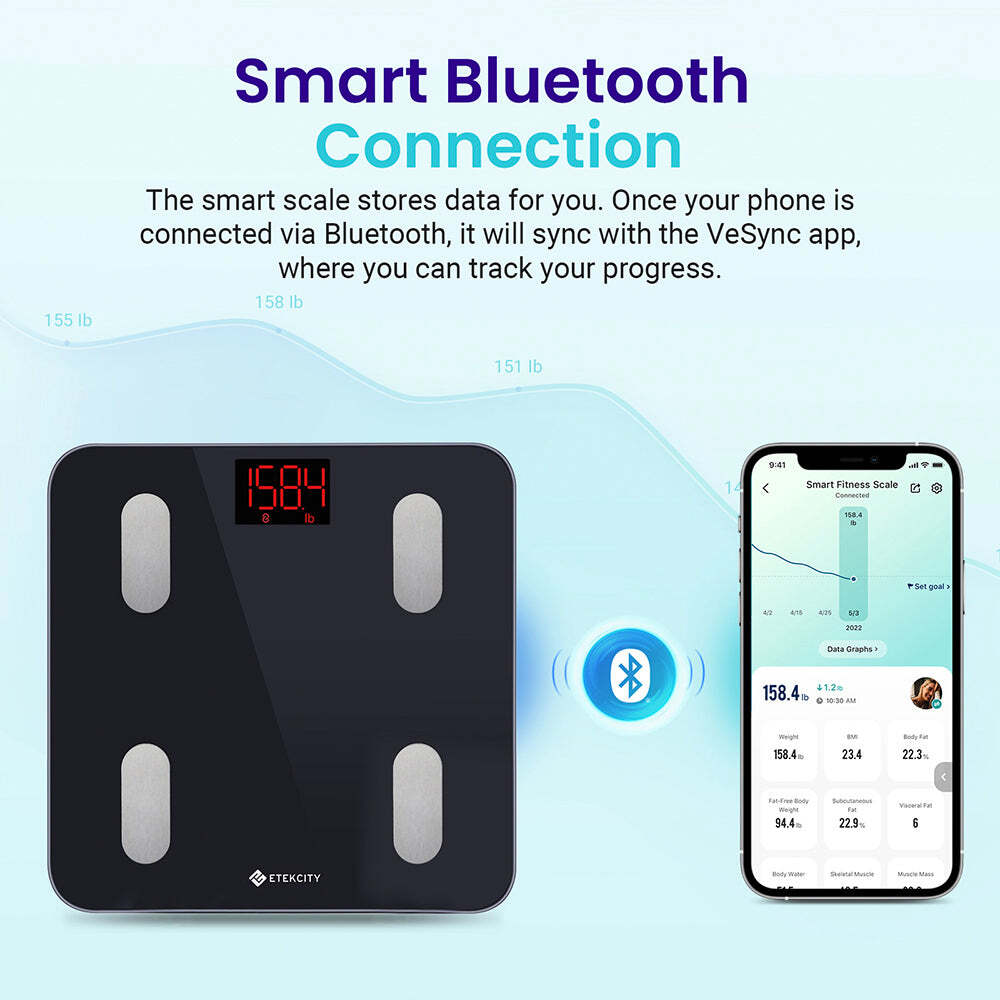 Experience the future of fitness tracking with Etekcity's Smart Scale. Effortlessly monitor your progress and achieve your health goals with a user-friendly, digital scale that guarantees accuracy. With a generous capacity of 400 lb / 180 kg / 28 st, this scale accommodates diverse needs with precise 0.05 kg increments.