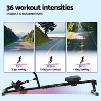 Experience a full-body workout with the Everfit Rowing Machine. This compact and efficient fitness equipment features a hydraulic system with 36 workout intensities, suitable for users of all levels. Its space-saving foldable design and quiet operation make it perfect for home use. Track your progress with the built-in LCD display as you row your way to better health and fitness.