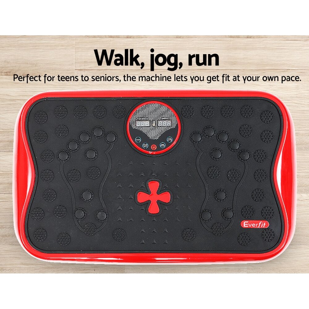 When you do not have the time for the gym, our Everfit Vibration Machine is all you need to keep yourself in shape. A 15-minute workout on the vibration machine is equivalent to double the time spent on swimming, yoga and sit-ups, and almost 60 minutes of jogging and riding. A very efficient use of precious time to get your body shaped and toned quickly. Operating the machine is super easy with the digital and remote controls. Just set the time, speed and intensity and you are good to go. The stepper even has a point-massage surface so that you can enjoy reflexology while working out. Our vibration machine features a powerful dual-belt motor that is designed to be durable, stable and safe. With a weight capacity of up to 120kg, it is the perfect fitness trainer for people of all ages. Plus, the machine comes with a set of resistance bands for those keen on more intense workouts. Getting fit and losing weight can be a feel-good experience. And it is even better with our vibration machine, with a whole lot of shaking fun going on.