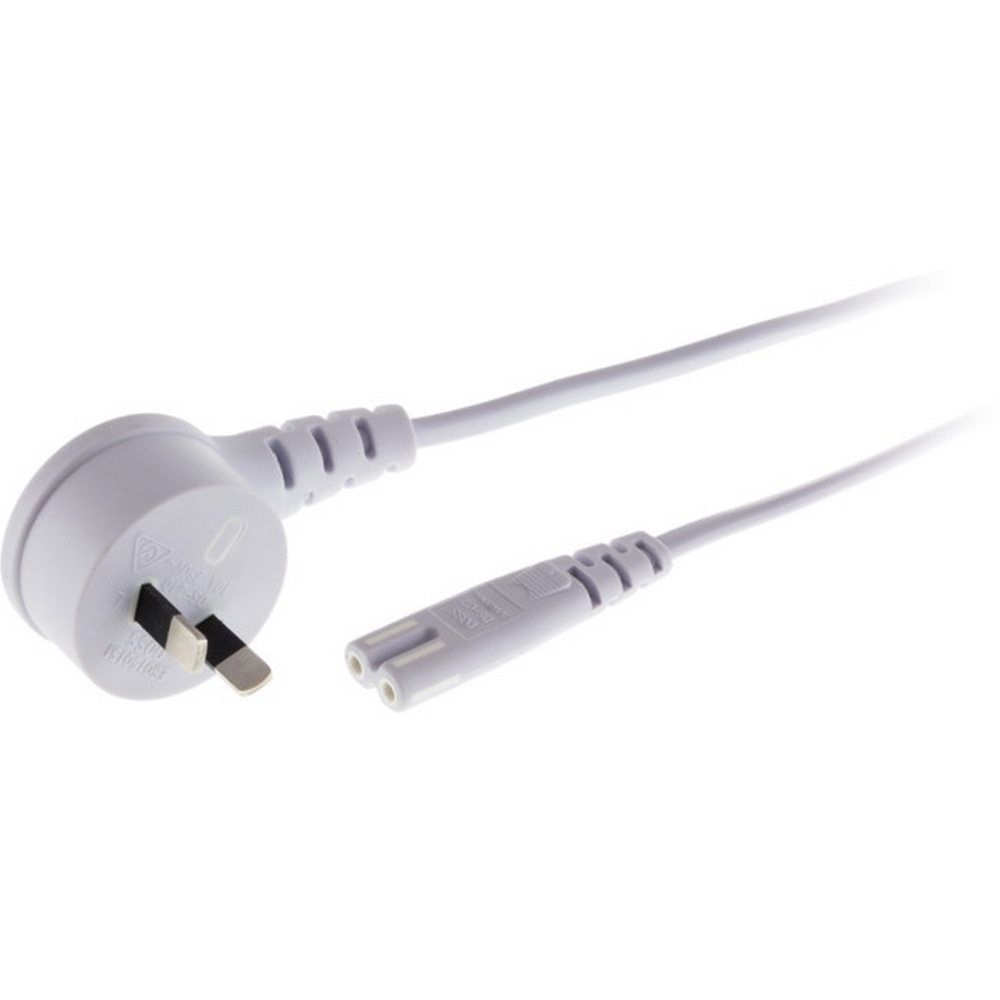 IEC-C7 Appliance Power Cord - 2m Length - White right-angle AU 2-pin Mains Plug