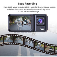 Built in Gravity-Shock Sensor, then the dash cam detects a collision or bump happens, the sensor will auto-lock the footage as evidence.The Loop recording function can overwrite the oldest unprotected files when the SD card is about full.