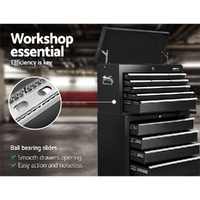 This robust, multi-drawer Giantz Tool Trolley is an essential for any workshop. Crafted from durable steel, it features smooth ball-bearing slides for easy access and a secure lock system for safety. Its spacious design includes varying drawer sizes to accommodate tools of all shapes, complete with non-slip liners. The chest is also mounted on omni-directional castors with locakble front wheels, ensuring a smooth maneuverability and stable positioning. Sleek and functional, it's perfect for organizing and protecting your valuable tools.