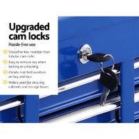 This robust, multi-drawer Giantz Tool Trolley is an essential for any workshop. Crafted from durable steel, it features smooth ball-bearing slides for easy access and a secure lock system for safety. Its spacious design includes varying drawer sizes to accommodate tools of all shapes, complete with non-slip liners. The chest is also mounted on omni-directional castors with locakble front wheels, ensuring a smooth maneuverability and stable positioning. Sleek and functional, it's perfect for organizing and protecting your valuable tools.