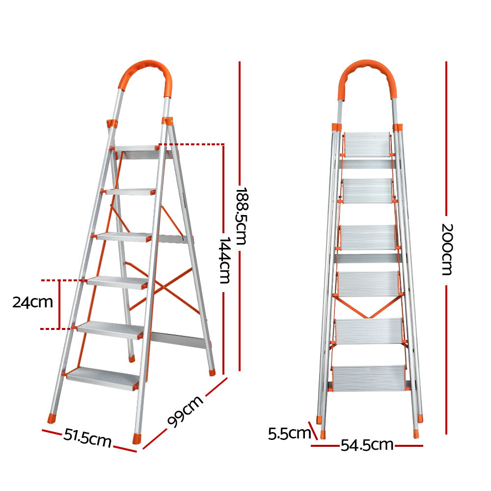 Climb your way to the top with the Giantz 3/4/5/6 Step Ladder. Made from a lightweight aluminium construction, the step ladder is easy to carry but incredibly stable. The ladder has an X brace at the back, side braces and an extra sturdy beam towards the base, making it extra safe and stable when working at height. It features a scoured anti-slip tread on each step, a foam easy-grip safety handle and non-slip rubber feet to prevent slipping and floor damage. The ladder folds down easily to 5cm wide, so you can easily slip it into any storage space. It is easy to carry and suitable for all kinds of odd jobs, indoors or outdoors. No matter what needs work around your home, have a Giantz 3/4/5/6 Step Ladder at the ready!