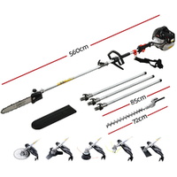 The ultimate gardening machine is finally here. Featuring no less than seven different gardening tools and attachments, the Giantz Multi-Tool Pole Chainsaw is a mechanical marvel that makes light work of even the most challenging garden maintenance tasks. The latest in the Giantz 62cc Pro-Series, the Multi-Tool Pole Chainsaw is powerful and efficient and designed to cut, trim and sculpt with ease. It comprises a host of desirable features such as a super responsive motor, in-built anti-vibration mechanism, auto chain lubricator, adjustable chain oil feed and easy start system. Included in this mega gardening machine are three extension poles to bring the reach up to 5.6m*. 26mm premium anodized commercial alloy is used for the shafts and poles and the commercial-grade quick-connect couplings are equipped with dual ball-bearing floating centres to make operating the tools smooth and easy. Genuine commercial spline fastening also ensure maximum stability when using the extensions. It even comes loaded with a bonus accessory kit, including gloves, earmuffs, glasses, a mini toolkit, a shoulder strap, spare chain, a spare spark plug and fuel mixer. You'll have everything you need to get started safely and right away. Have you been putting off those difficult gardening tasks? Hesitate no more. Lay your hands on some serious tools and get your garden into tip-top shape with the Giantz Multi-tool Pole Chainsaw.