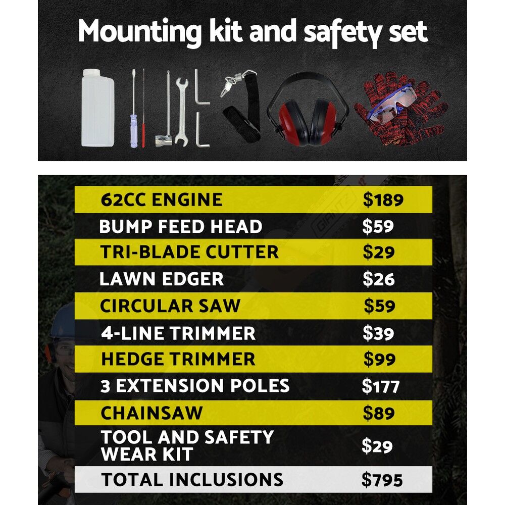 62CC 9in1 Pole Chainsaw Set