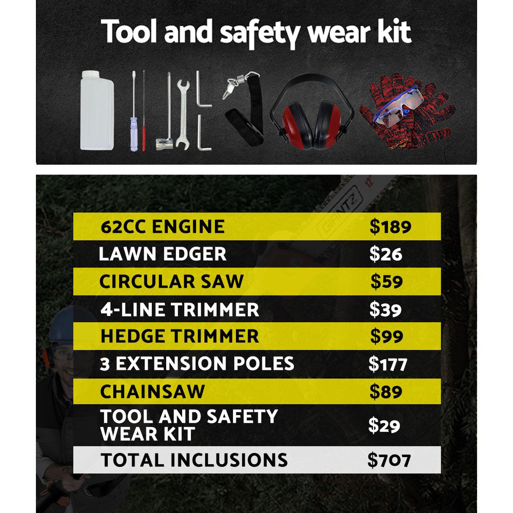 Giantz 62CC Pole Chainsaw Hedge Trimmer Brush Cutt