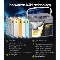 Need portable power? Our Giantz Deep Cycle Battery provides off-the-grid power supply for 4WD vehicles, caravans, campers, trailers, motorhomes, saltwater/marine applications, and all 12V appliances including portable fridges and washers. With better low-temperature performance, the battery will perform perfectly in various environments. The battery features an industry-leading build life of up to 1400 cycles, making it one of the most enduring in its class. What you get is a longer, consistent and more drawn-out charge all the time. With its advanced AGM technology, the battery enables better electrolyte absorption, cyclic stability and frequent charging without affecting performance. The bolt-down terminals also allow for a more reliable experience, and the high oxygen-recombination efficiency results in superior deep discharge recovery. The maintenance-free deep cycle battery is completely sealed, spill-proof and does not leak gas for added safety and durable use. With a convenient carry handle, portability is ensured. When you need power on the road, you need a Giantz Deep Cycle Battery.