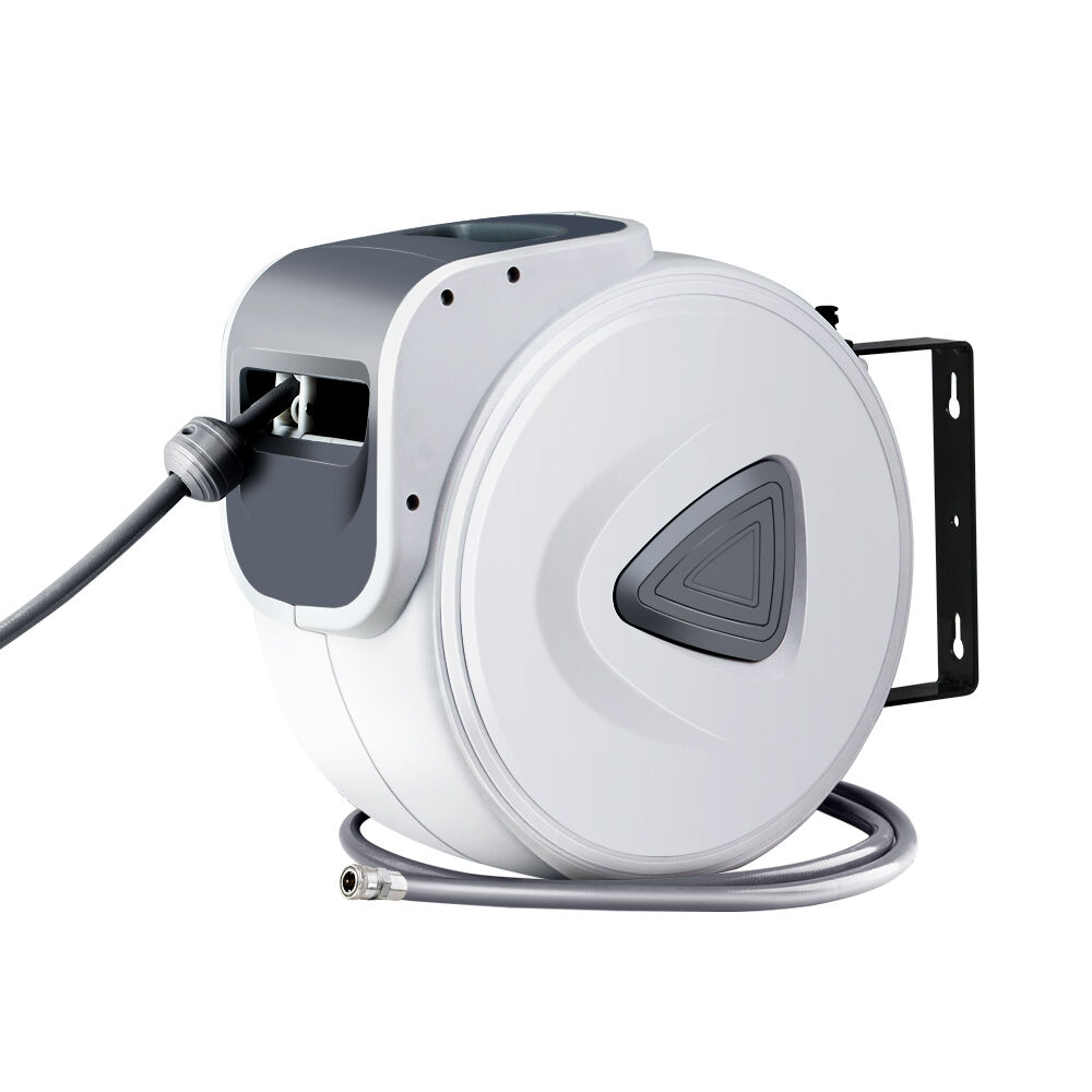 If you are looking for a long and retractable air hose reel for your home or commercial workshop, then consider the GIANTZ Wall Mounted Retractable Air Hose Reel. With a 20m or 10m hose (depending on model) that offers you unbridled movement around your workshop from one connection point, the retractable air hose reel comprised a UV-resistant PVC hose with premium stainless steel ¼" BSPT AU quick-connect fittings. Linking the hose to a compressor is easy via the leader hose that connects to the side of the unit. The spring-loaded hose utilises an incremental feed lock that allows the extended hose to stay put at its place. And after the work is done, just give a hose a firm tug to activate its auto rewind function. As it rewinds, its self-layering mechanism will ensure that the winding is done neatly and evenly within the casing. The air hose reel can be swivelled 180° when mounted on the wall to allow easy hose movement around corners. If required, the entire unit can be removed by slotting out the quick-release hinge rod and secured with the same at another location within the workplace. Other handy features include a rear leader hose holster that provides a safe and tidy connection between the compressor and reel, an internal access hatch located at the top of the casing and a swivel carry handle.