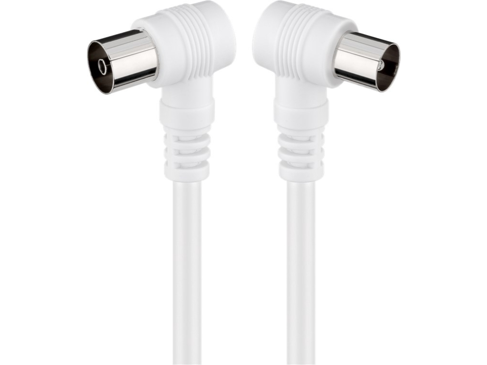 Features:Coaxial plug 90° > Coaxial socket 90° ***BULK POLY BAG*** Double shielded satellite cable for interference-free transmission Molded plug on both sides to protect against dust dirt and mechanical stresses Coaxial cable with nickel-plated precision-fit contacts Angled plugs simplify laying the coax cable even in tight spaces. TV aerial cable for connecting devices with a coaxial connection such as televisions receivers and radios|Tech Specs:Cable sheath diameter (approx.) - 5 mm inner conductor core diameter - 0.5 mm Inner conductor material - CCS Shielding efficiency - 70 dB Number of shieldings - 2 x Type 1 shielding - foil (aluminium) Type 2 shielding - braid (aluminium) 32x Material cable sheath - PVC Impedance - 75 Ω|