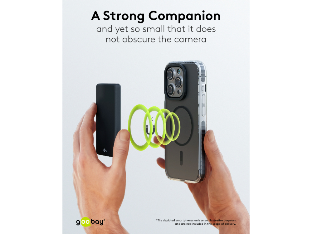 Overview:Attaches magnetically to the back of the phone ideal for charging and phoning at the same time ***RETAIL BOX*** With maximum magnetic force the mini power bank attaches to the smartphone - like a small backpack that is so compact that it provides perfect access to the camera. Thanks to the strong adhesion and the ultra-small format the power bank remains docked to the mobile phone even when making a call or taking a picture making it perfect for mobile charging - anywhere and anytime.|Features:Compatible with MagSafe-enabled devices such as the Apple iPhone the Apple AirPods or the Samsung Galaxy S24 S23 and S22 Super-slim power bank for the inductive charging of smartphones smartwatches or headphones with up to 15 W With the magnetic ring the power bank attaches securely charging the mobile phone in your pocket on the go or while in use - without covering the camera For full flexibility the portable charger is also equipped with 1x USB-C™ output (Power Delivery) for wired fast charging of smart devices with up to 20 W Completely charged the battery pack fully recharges a smartphone 1x The portable charger recharges via the combined USB-C™ input/output (incl. 0.3 m charging cable USB-A to USB-C™) Handy LEDs indicate the charging status of the portable charger|Tech Specs:-Battery- Battery Type - Lithium-Polymer Battery (LiPo) Voltage - 5 V Max. capacity - 5000 mAh -Performance- Input - min.5.0 V / 2.0 A (10.0W) 9.0 V / 2.0A (18.0W) 12.0 V / 1.5 A (18.0 W) Output - Output: 5.0 W 7.5 W 10.0 W 15.0 W 20.0 W Wireless Output: 15.0 W USB-C Output: 20.0 W Max. performance - 15.0 W -Device connections- Input type - USB-C™-socket x in Output type - USB-C™-socket Output max. amperage - 3 A Output voltage (DC) - 5 V (DC) Output voltage (DC) - 5.0 V (DC) Output max. amperage - 3.0 A -Dimensions / Weight- Length - 96 mm Width - 66 mm Height - 9.5 mm Weight - 124 g|