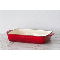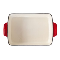 This enamelled cast iron roasting pan is the perfect addition to any kitchen. Crafted with precision, it guarantees even heat distribution and retention, and its easy-to-clean enamelled coating simplifies the cleaning process. Plus, its oven-safe feature allows for smooth transitions from stovetop to oven, making it a must-have for creating mouthwatering roasts and roasted veggies.