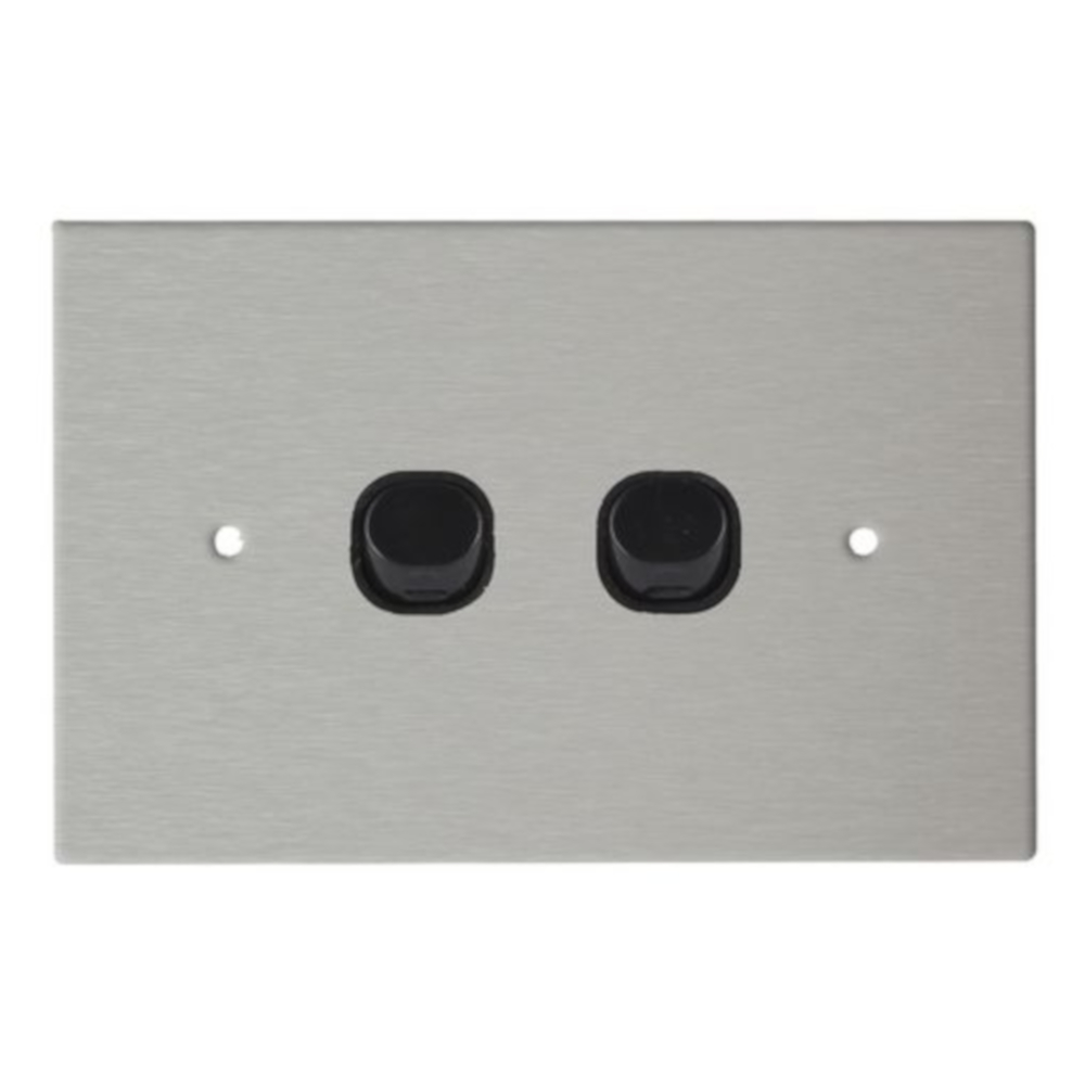 16A 250V AC multiple power switches. Stainless steel wall plate. Special fingerprint resistant coating, black plastic switches. Comes with screws, and earth cable. Flush mount 130x80mm.
