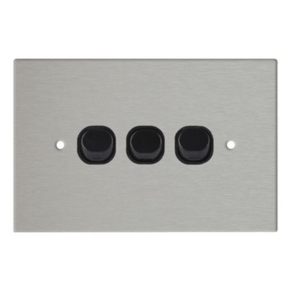 16A 250V AC multiple power switches. Stainless steel wall plate. Special fingerprint resistant coating, black plastic switches. Comes with screws, and earth cable. Flush mount 130x80mm.