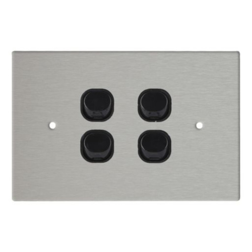 16A 250V AC multiple power switches. Stainless steel wall plate. Special fingerprint resistant coating, black plastic switches. Comes with screws, and earth cable. 130x80mm.