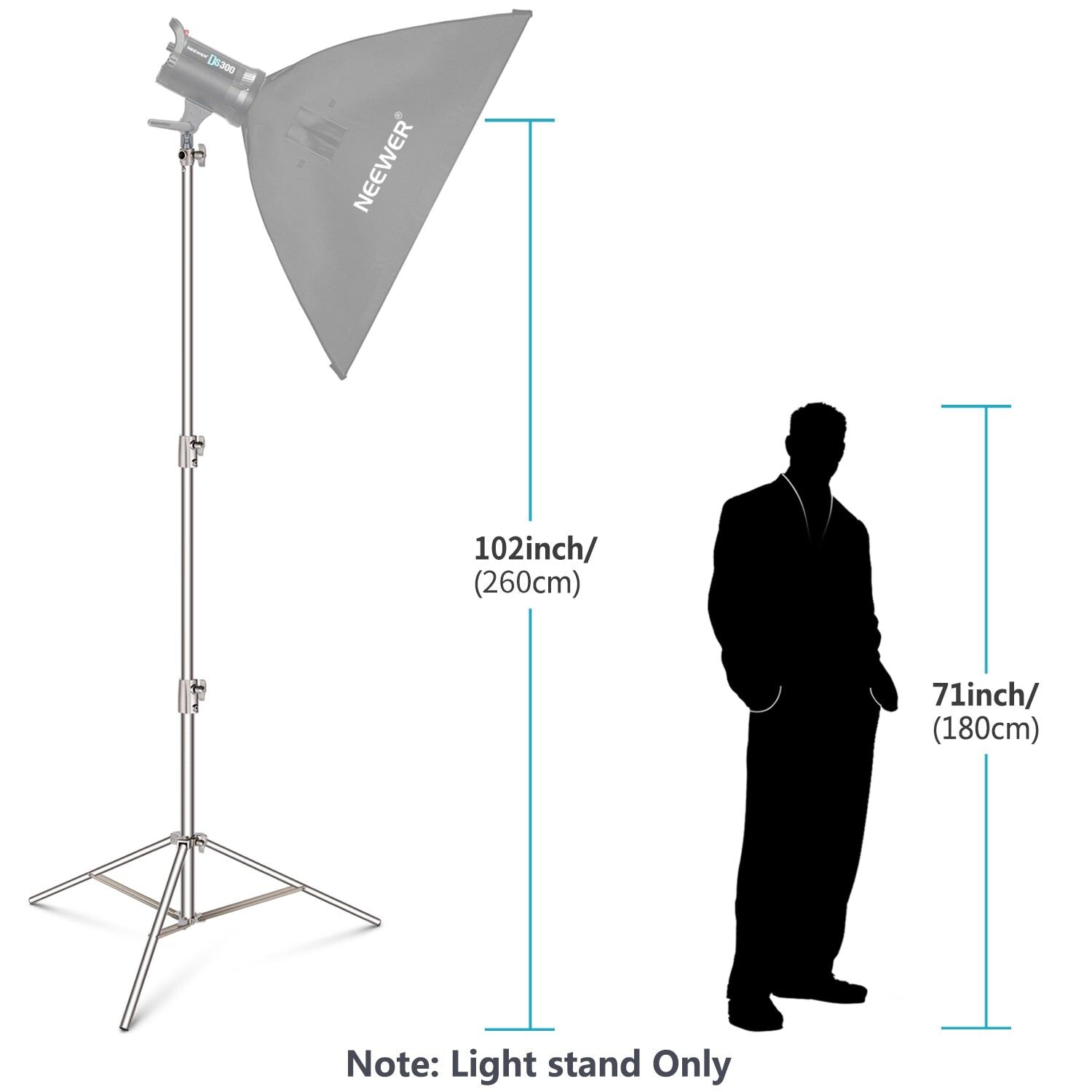 The light stand is used for mounting strobe lights, reflectors, umbrellas, softboxes, and other photographic equipment; Both for studio and on-site use. Stainless steel construction is corrosion-resistant and long-lasting, protecting the light stand from air pollution and salt exposure. Its solid locking capabilities ensure the safety of your lighting equipment when in use. Foldable and portable; Lightweight to be carried with; Sandbags can be placed on the legs to increase the base weight (Not included). Included 1/4-inch to 3/8-inch Universal Adapter applies to most photographic equipment.