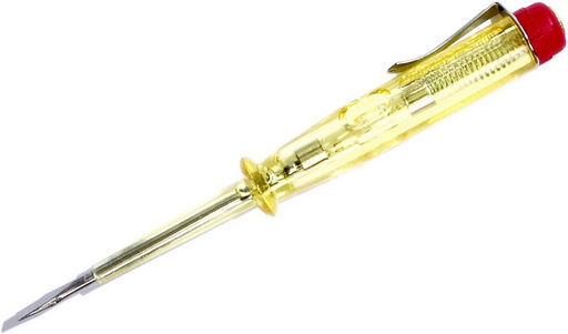 Steel Blade Tip 5mm Mini Screw driver 145mm with a clear handle and inbuilt neon lamp that will indicate the presence of AC voltages 125-250Vac Ideal for tag strips, etc. as it will indicate if the screw is live! Safety 1st.