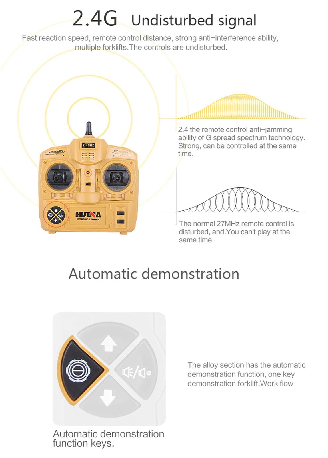 The HuiNa 8-Channel 2.4G ForkLift is a scale model of a real forklift that works just like the real thing. The frame is made of hard metal alloy for durability, while the powerful motor allows for uphill climbing.
