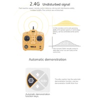 The 2.4GHz transmitter allows for 7 separate functions. 2.4GHz technology allows for multiple models to run at the same time without interference. The die-cast alloy cab also features lights and music for the ultimate in scale realism.