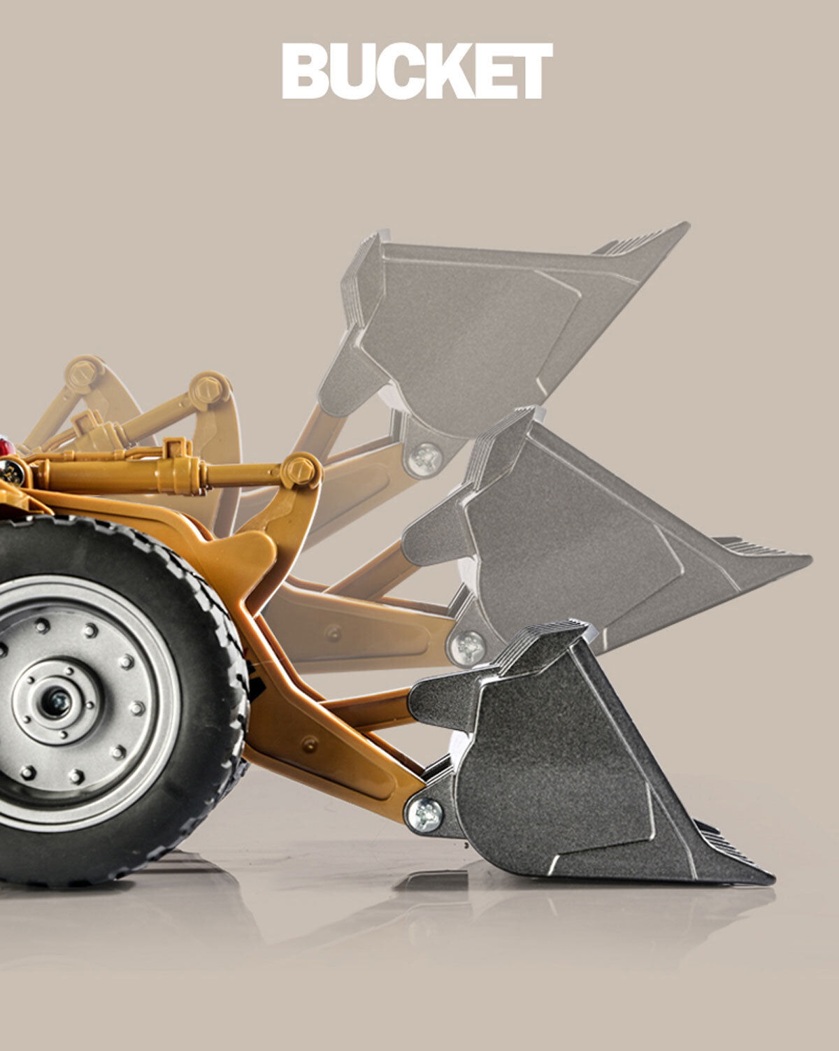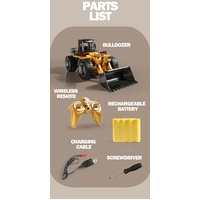 Channel 2.4G bulldozer is a scale RC model of a real bulldozer that works just like the real thing. The frame is made of hard metal reinforced alloy for durability, while the powerful 4WD double motors allows for traversing even the toughest terrain. The wheels are made of hard metal for durability with slip-resistent rubber tyres