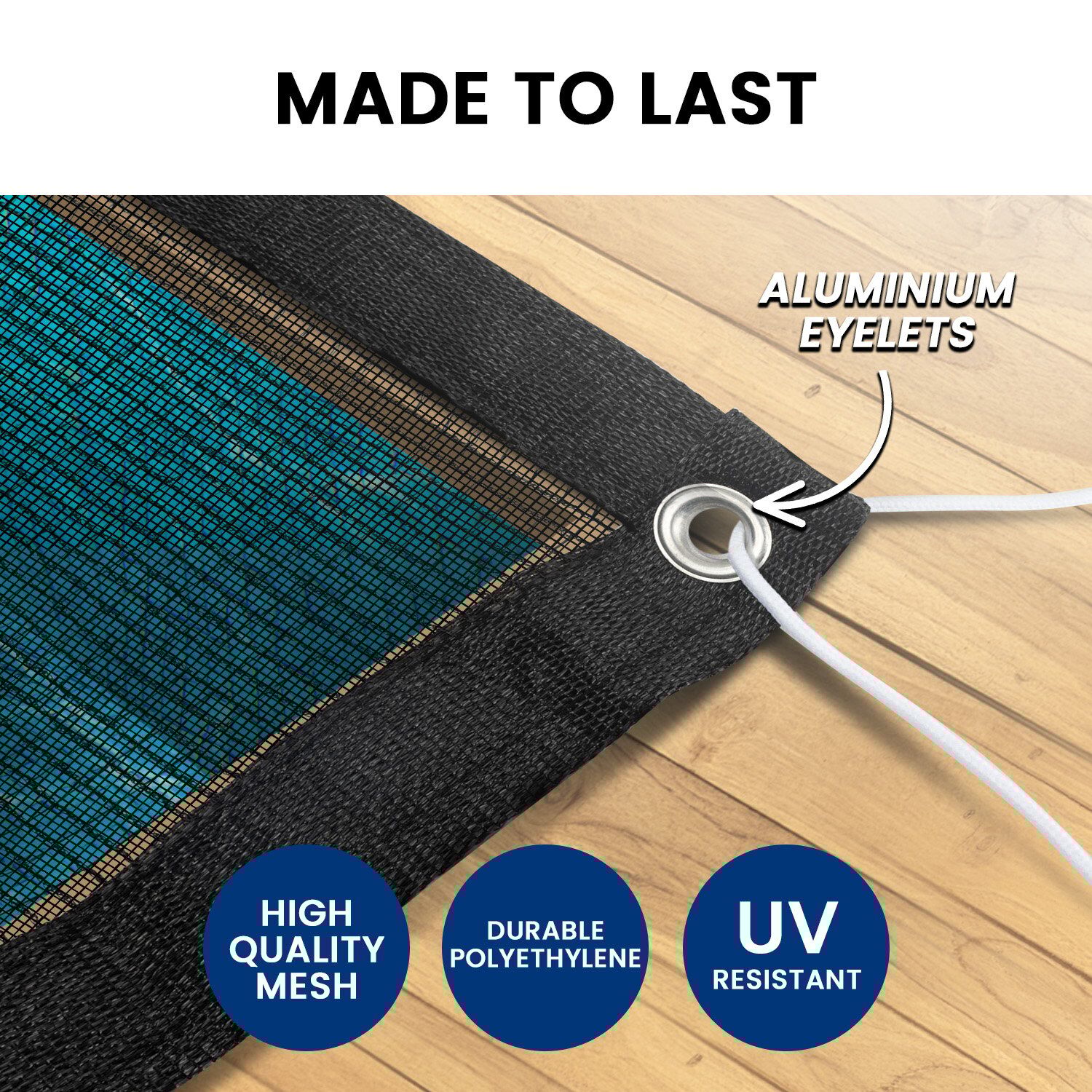 Highly durable and made to last, this quality net is made from Polyethylene material with UV treatment so it's sun, colour and wear-resistant. It also has strong aluminium eyelets so you don't have to worry about the net falling into the water.