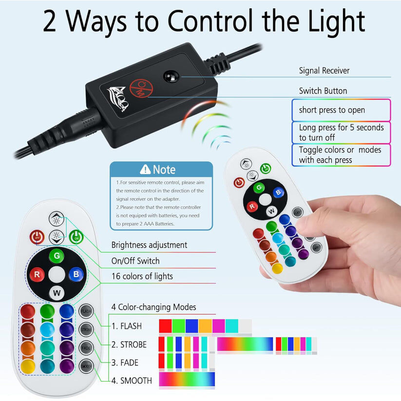 • 2 Ways to Control: You'll have 2 options to control the aquarium light. The aquarium light equips with a switch controller and a remote controller (need to prepare 2 AAA batteries by yourself). You can control the light with the remote control within 3 meters.