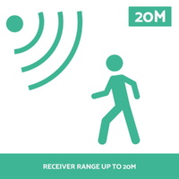Receiver range: =20m. Range can be reduced to 30% in bad weather conditions.