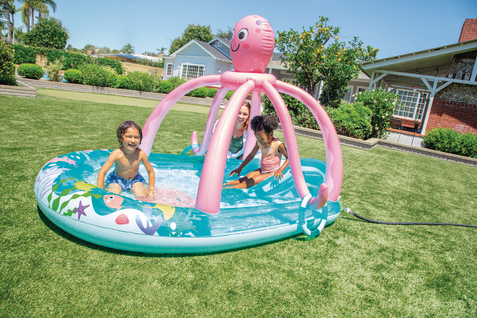 Bring the sea to your backyard! Attach a garden hose to the sprayer and watch your kids enjoy hours of splashy sliding under the happiest octopus ever.Details