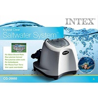 Intex Salt Chlorinator Krystal Clear Above Ground Pool 5g/hour 26668SAY GOODBYE TO CHLORINE!Eliminates bacteria and algae from pool water using virtually undetectable amounts of economical, eco-friendly salt. This system produces low levels of natural chlorine that swimmers neither feel nor smell. The result is soft, fresh, clean water without the potential harsh side effects of packaged pool chemicals!Chlorine generator Intex 26668 is designed for water purification in frame and inflatable pools.Fights the formation of mucus, moss on the walls and bottom of the pool, and also helps to keep the water from the multiplication of microbes and green ooze.The Krystal Clear Seawater System combines a unique two-step pool sanitisation technology. By using common pool salt, the Krystal Clear Chlorinator simplifies pool maintenance and eliminates the need for pool chemicals, and provides clean, clear water that is non-irritating to skin and eyes.Has a touch control panel with the ability to lock, allows you to set the operating modes:- timer for automatic operation,- pressure and water flow sensor,- self-diagnostics and auto-shutdown system.Designed for use with a filter pump with a capacity from 2650 to 11,355/ h (purchased separately).Suitable for pools up to 26,500 litresRequired pump capacity: between 3,407 l and 11,355l/hourMaximum chlorine production: 5g/hourDetails: