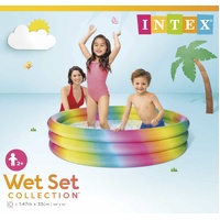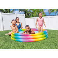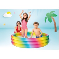 Get your family out of the house and enjoy the summer season with Intex Rainbow Ombre Kids Pool. Perfect for water play activities in your own private gateway. Made with comfortable vinyl rings to ensure your children are comfortable when they are staying cool all summer long! Measuring 1.47m x 33cm when inflated your little ones will be delighted to play in the cool water this summer in this fun pool with colourful rainbow design. Always supervise children around water. Have a cool summertime activity with your kids and enjoy every splash of the water!