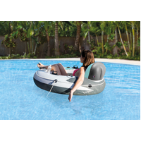 No need to get out of the pool for a nice refreshing beverage when you have an Intex Mega Chill 2! Designed with three air chambers for added safety, six built-in cup holders, four durable handles, and a removable ice chest that holds up to 72 soda cans plus ice, the Mega Chill 2 is a convenient accessory for a refreshing pool experience. The base can also be used as a floating base for a cooler up to 48 quarts.