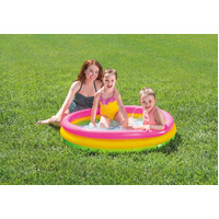 The Intex Sunset Glow Kiddie Pool is perfect for the kids who like to go underwater. Designed with 3 bright, colorful rings and a comfy inflatable floor, it sets up easily in the backyard for loads of splash-filled fun.