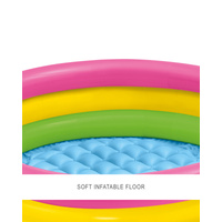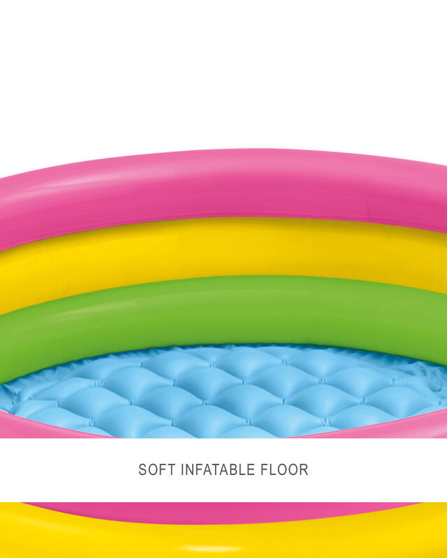 The Intex Sunset Glow Kiddie Pool is perfect for kids who like to stay cool in the pool all summer. Designed with 3 bright, colourful rings and a comfy inflatable floor, it sets up easily in the backyard for loads of splash-filled fun!